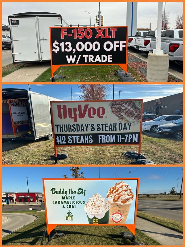 605 Signs brings you effective and affordable rental sign advertising. We have the largest selection of portable rental signs in Sioux Falls and surrounding regions. We serve customers ranging from small businesses to large corporations. Portable signs are an ideal short-term or long term advertisement method. Let us show you how. Please contact us for your next advertising solution! Expect success with 605 Signs in Sioux Falls!